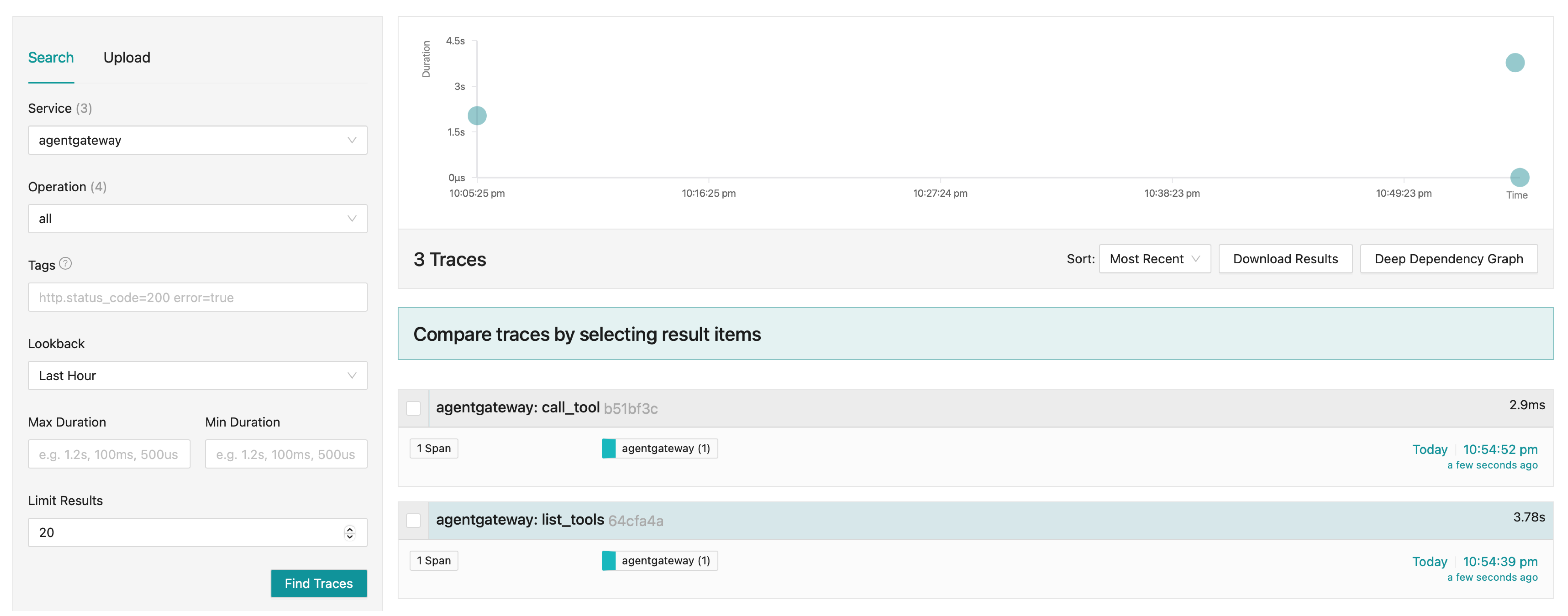agentgateway. - Click Find Traces.